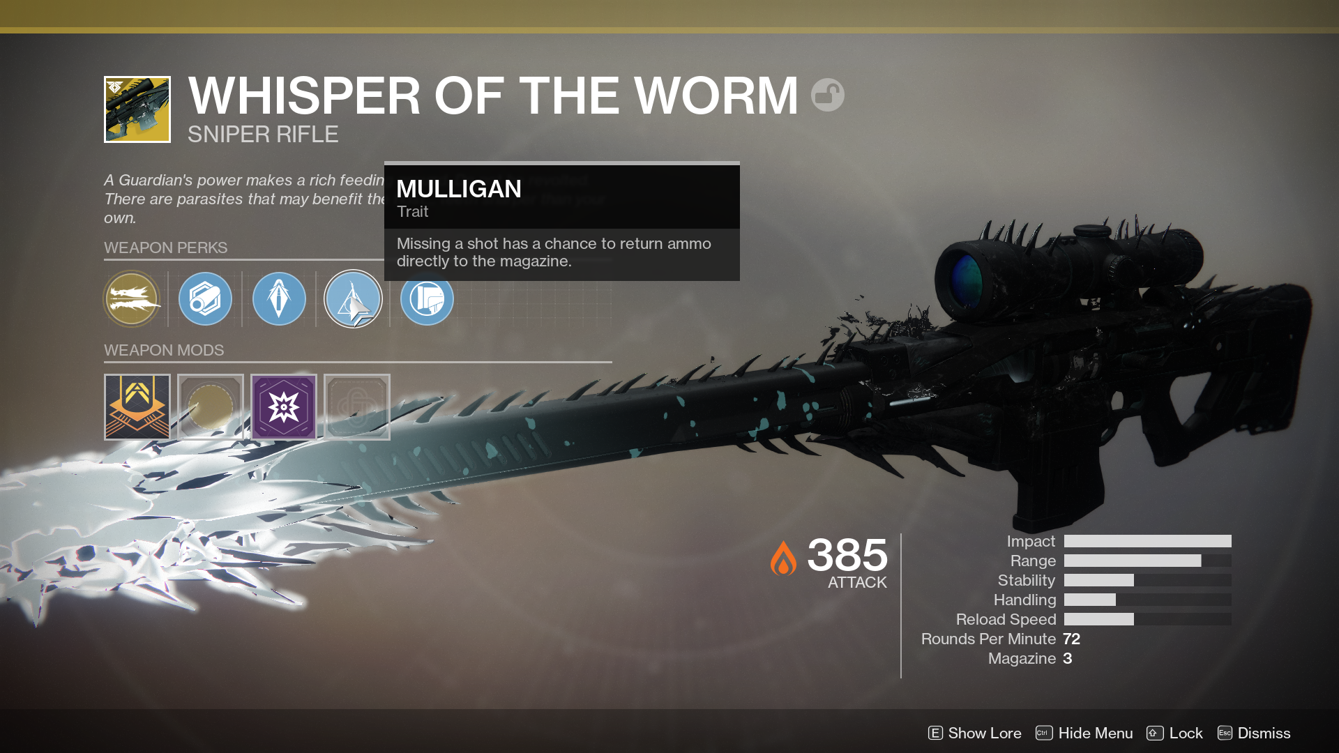 - The Whisper of the Worm – A powerful sniper rifle that deals massive damage and generates its own ammo.